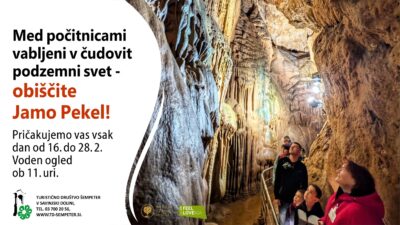 Vljudno vabljeni med letošnjimi zimskimi počitnicami, od 16. do 28. februarja 2026, na ogled Jame Pekel. Dobrodošli vsak dan ob 11. uri. Lahko pa nas pokličete na tel. 031-945-937 – TD Šempeter