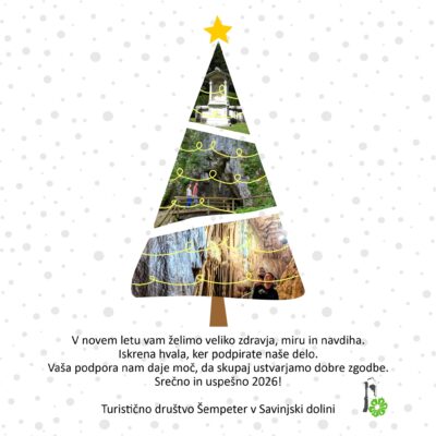 VOŠČILO Objavljeno 29.12.202529.12.2025 Spoštovani! V letu, ki prihaja vam želimo veliko dobrot, doživetij, zdravja in sreče! Vsem članom, prostovoljcem iskrena hvala za vaše zlate roke, ki vedno priskočijo na pomoč pri urejanju in skrbi za naše turistične bisere!