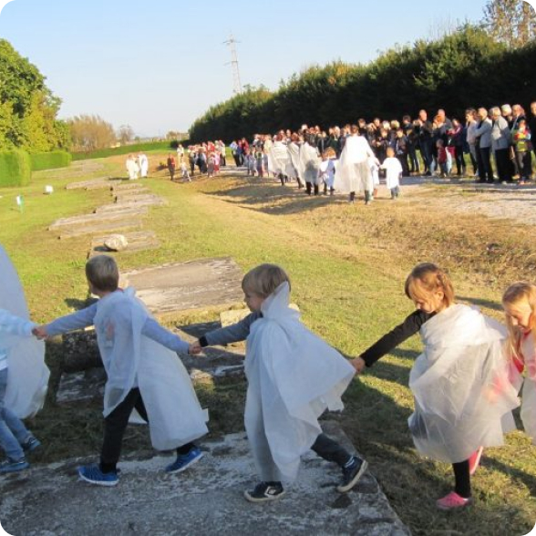 Vzhodno od rimske nekropole so našli ostanke rimske ceste Akvileja–Emona–Celeia–Poetovio, ki je potekala od današnjega Ogleja v Italiji preko Ljubljane in Celja do Ptuja. Vozišče, ki je teklo vzdolž celotne nekropole, je v širino merilo 6 metrov, skupaj z obcestnima jarkoma pa je bila cesta široka 9 metrov. V Šempetru se še danes ob tristo metrov dolgi rimski cesti vrstijo obnovljeni tlorisi grobnic in manjših grobov iz časa Rimljanov. Rimska cesta je od Arheološkega parka Rimska nekropola oddaljena slabih 5 minut počasne hoje.